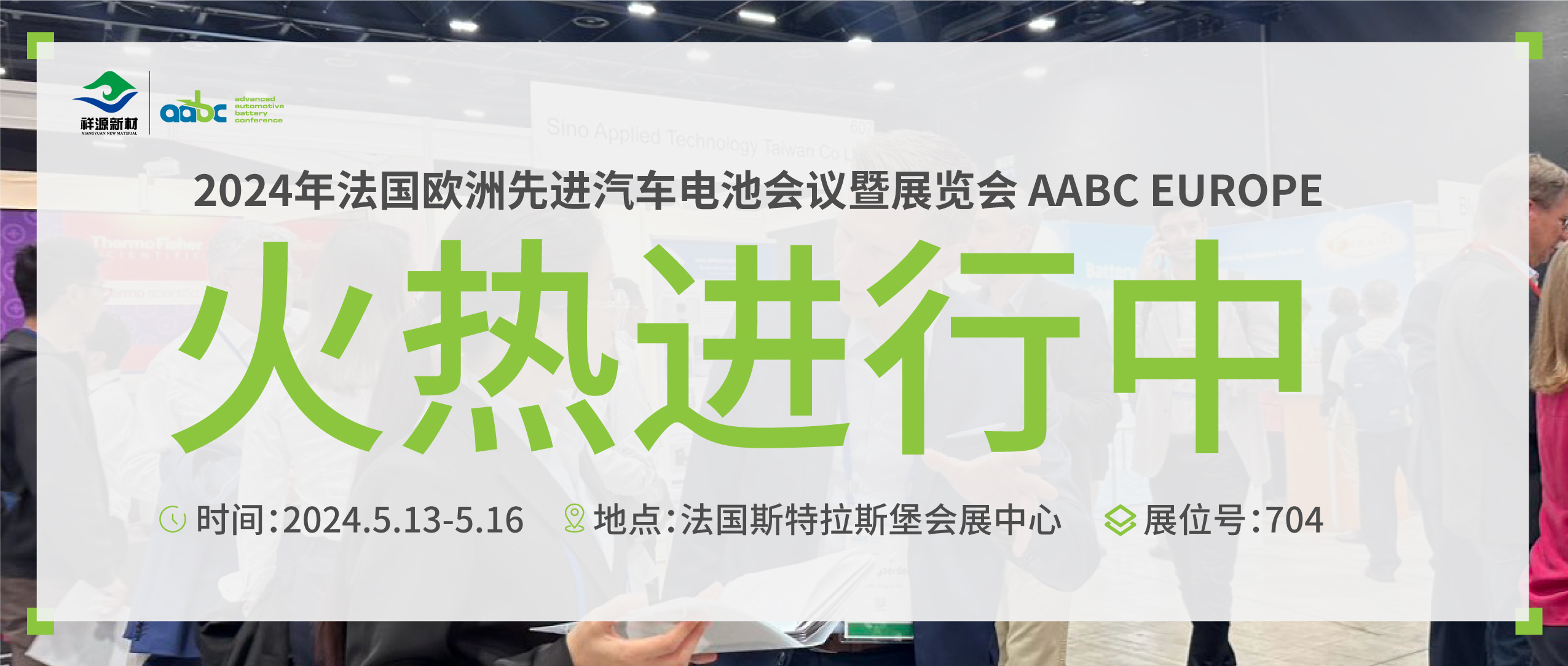 展會(huì)進(jìn)行時(shí)丨2024年法國(guó)歐洲先進(jìn)汽車電池會(huì)議暨展覽會(huì) AABC EUROPE 火熱進(jìn)行中,祥源新材邀您參加!